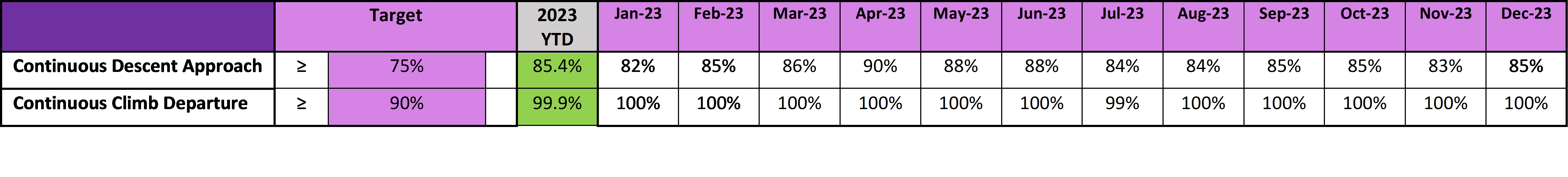 The greatest benefit of continuous climb departures is the significant reduction in CO2 emissions and the benefits this has on air quality. Edinburgh Airport promotes the use of continuous climb techniques at Edinburgh Airport with the average monthly achievment figures reaching 100% for the majority of the year